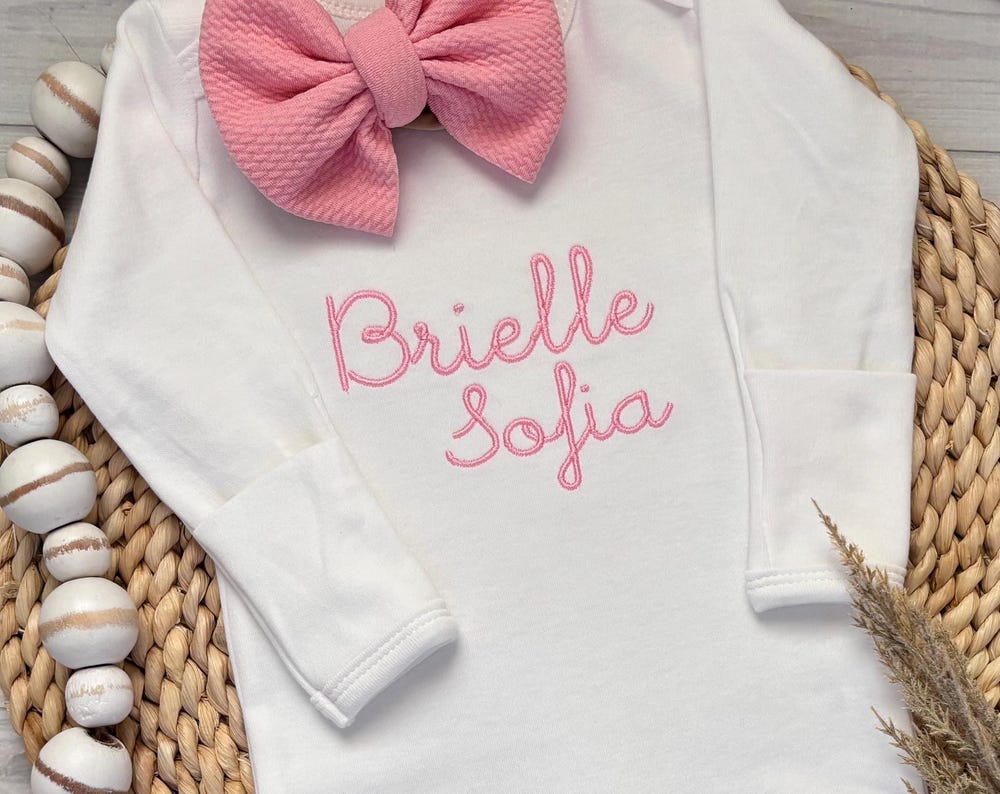 Bella Baby Boutique specializes in custom monogrammed and personalized baby clothes including baby girl and baby boy coming home outfits, gowns, rompers and bodysuits. Accessories include hats, headbands and baby booties to complete a unique and special outfit to welcome baby.